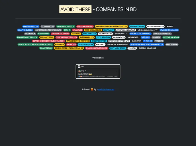 This is a place where you will find companies from bd who don't pay the salary timely to the employer. When you are going to any companies you should avoid these companies.