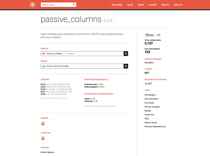 This gem addresses common issues faced by developers when certain columns are not needed for every operation, thereby preventing bloated queries and performance bottlenecks. With Passive Columns, you can exclude columns from default retrieval and load them only when necessary, striking a balance between efficiency and functionality.