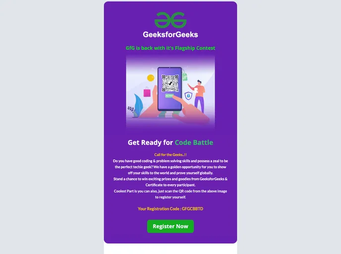 Email template project designed for GeeksforGeeks's Code Battle Coding Contest organized across India.