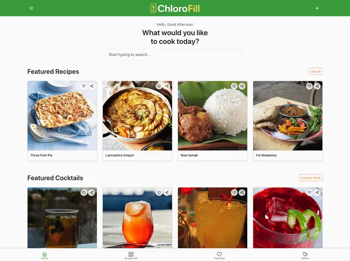 ChloroFill is a modern, responsive web application showcasing meal and cocktail recipes, built with Vue 3 and powered by Supabase for backend features.