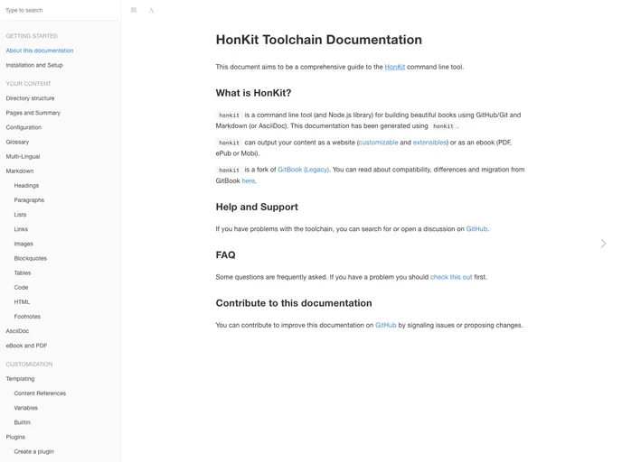 HonKit is an innovative tool that allows users to create stunning books effortlessly using Markdown or AsciiDoc, all while leveraging the power of GitHub and Git. With its simple setup process and features catered towards various writing needs, it has quickly become a preferred choice for writers, educators, and developers alike. HonKit not only streamlines the process of writing but also offers diverse output formats such as websites and eBooks, making it a versatile solution for many.