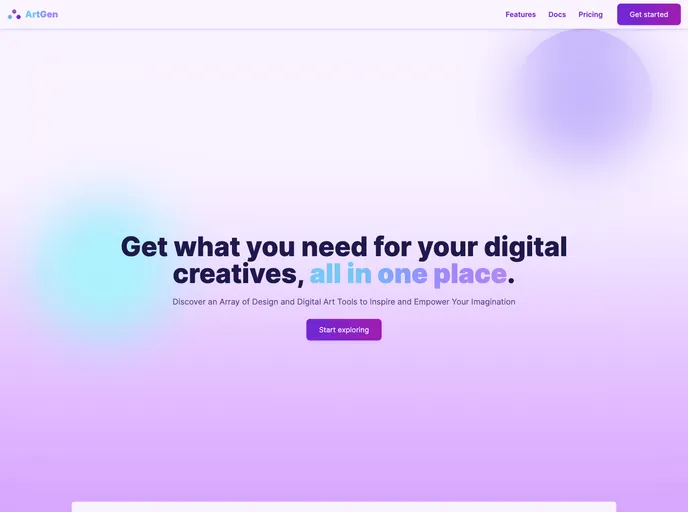 ArtGen is a collection of digital tools designed to help users create stunning software. It is an open-source platform that allows developers from around the world to share their ideas and collaborate efficiently. The platform currently includes features such as a color palette, gradients, page dividers, CSS generator, font pairing, and theme generator. ArtGen is built using ReactJS, NextJS, Tailwind CSS, and TypeScript.
