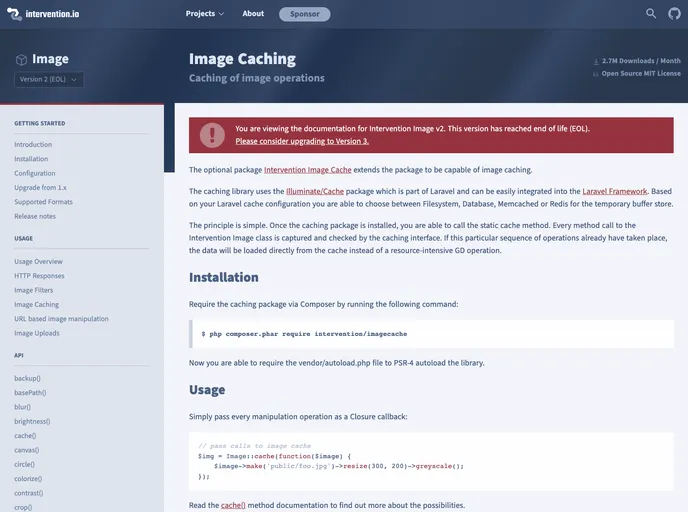 Static Method Caching: Utilize the static method Image::cache to effortlessly create cached images, ensuring repeated image manipulations are handled swiftly.