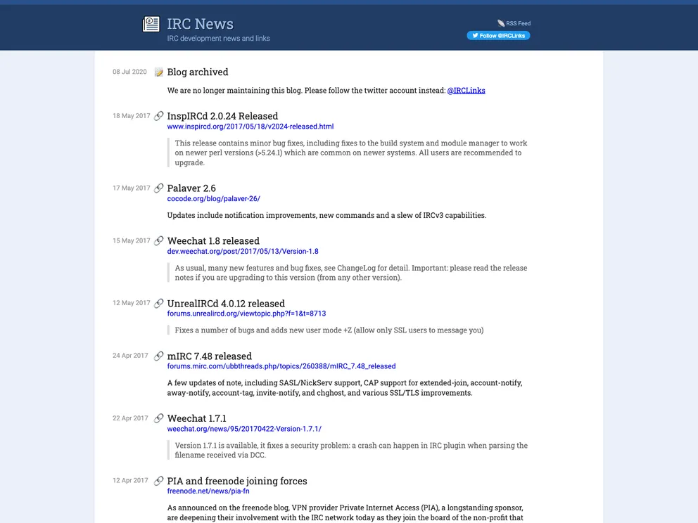 IRC development news and links