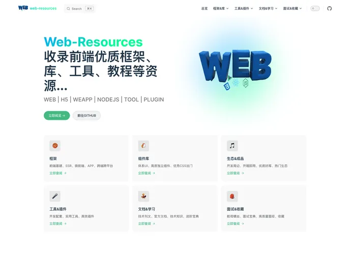 收录前端开发者资源,框架、组件库、优质模板等资源