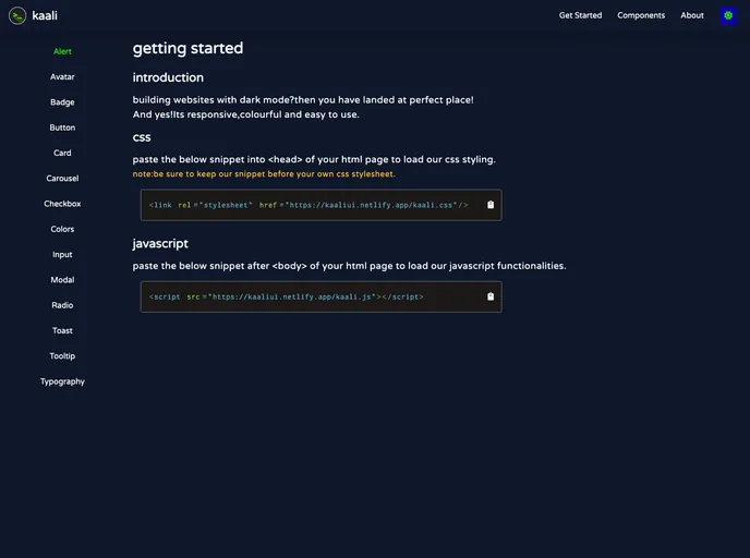 This is a component library made especially yo be used in dark mode.First Project @NeogCamp