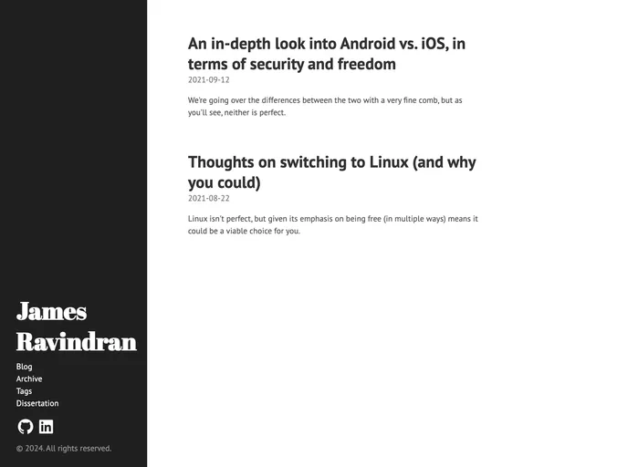 My personal blog is a modified version of the Kiko theme, which is itself based on Jekyll Now. It provides a user-friendly and visually appealing design for blogging. With its clean and minimalist layout, this blog theme focuses on showcasing content and enhancing the reading experience.