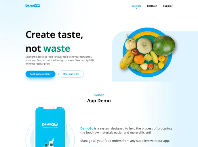 DamoGO is a startup company running its operation in solving the biggest food waste problem in SEA countries. This project is developed using Next.js, Typescript, TailwindCSS, and Hygraph Headless CMS.