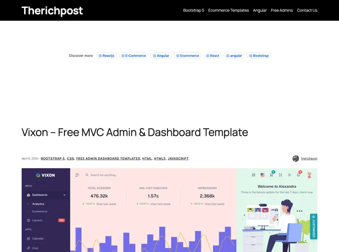 Free MVC Admin & Dashboard Template.