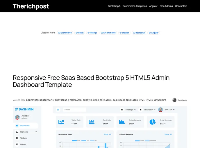 Responsive Free Saas Based Bootstrap 5 HTML5 Admin Dashboard Template