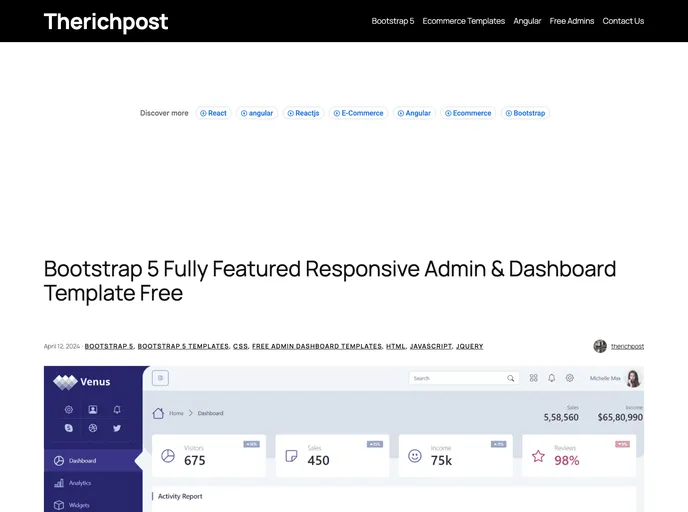 Bootstrap 5 Fully Featured Responsive Admin & Dashboard Template Free