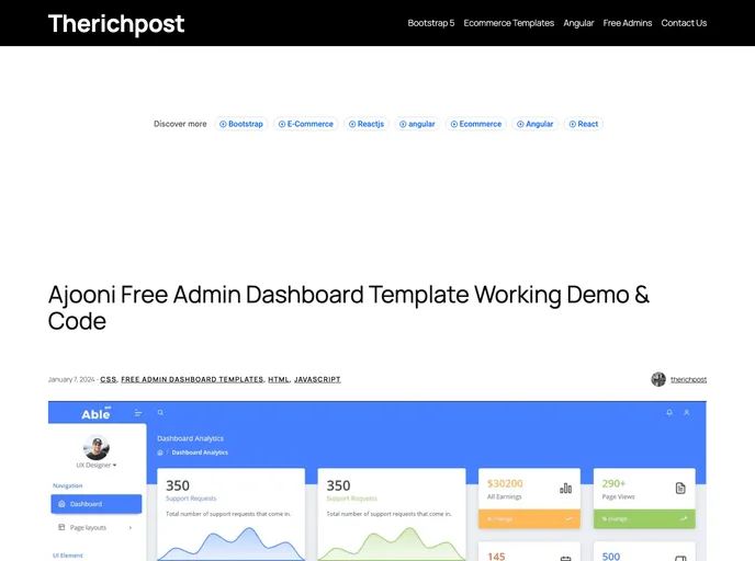 - Customizable Components: Ajooni Free Admin Dashboard Template provides a wide range of customizable components and widgets, allowing administrators to tailor the dashboard according to their specific needs.