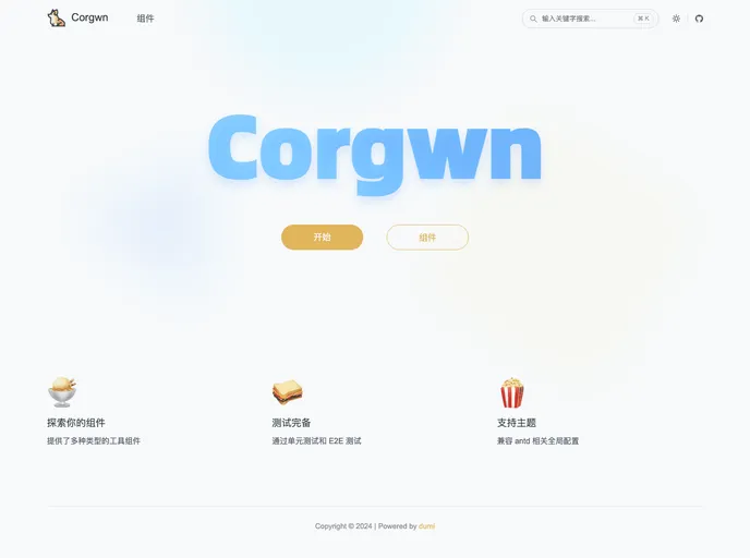 The "CI corgii codecov npm (tag)✨" theme is a feature-rich theme developed using TypeScript. It offers multiple types of utility components, comprehensive testing capabilities, and the ability to customize components using @corgwn/hooks. Additionally, it is compatible with Ant Design's global configuration. The installation process involves installing the theme using npm and importing the theme's components into your project.