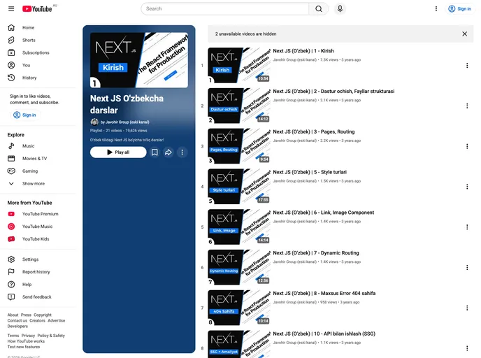 Barcha Next JS darslari bo'yicha resurslar. Next JS bo'yicha barcha darslarimiz