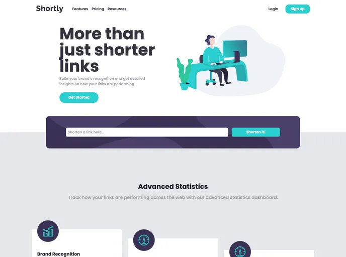 This landing page was developed in 2022 as a solution to the URL shortener API Front-end mentor challenge. It makes use of Tailwind.css, Javascript, and a Shortcode API to allow users to shorten links. The page follows a mobile-first design approach and incorporates responsive design principles. Overall, it successfully recreates the provided design and showcases the developer's skills in HTML, CSS, and JavaScript.