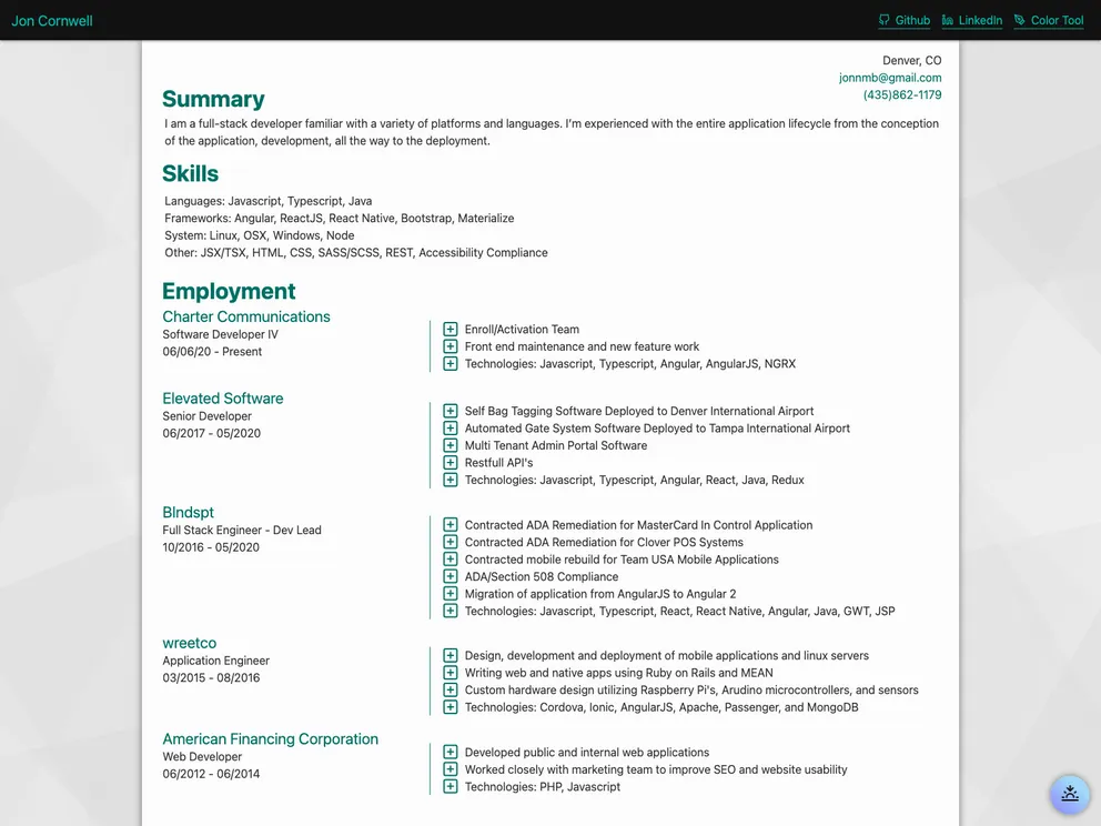 A personal webpage that is just my resume!