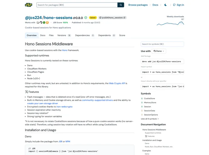 With features like flash messages and multiple storage drivers, Hono Sessions Middleware is designed to cater to various needs. Whether you're handling one-off alerts or need robust session management, this middleware has got you covered. It's an ideal solution for developers seeking simplicity without compromising on security and performance.