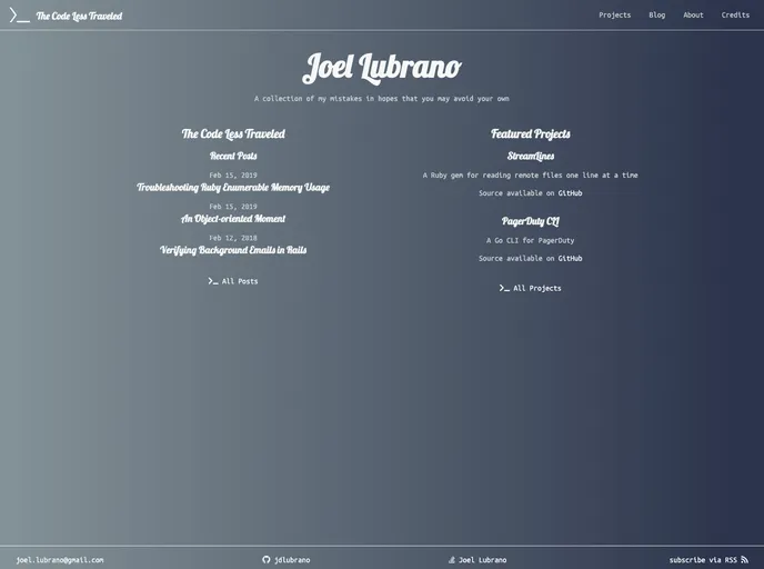 The "My Blog and Projects" website is available at jdlubrano.github.io. It is a development platform that allows users to run a Jekyll site locally.