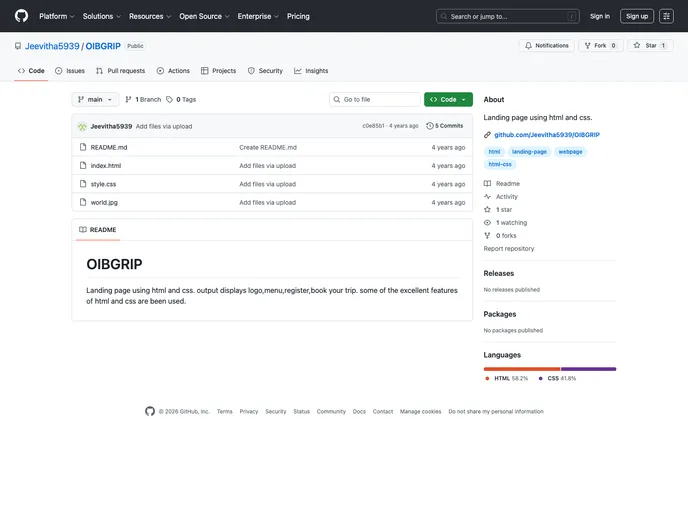 Landing page using html and css.
