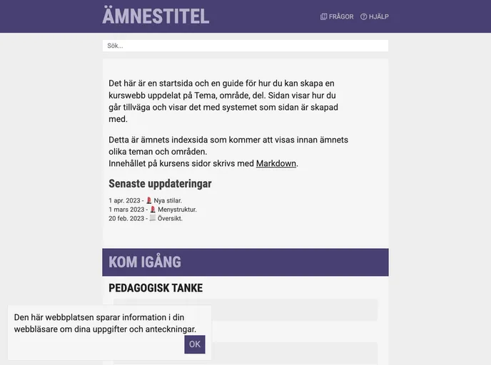 This product is a template for creating course websites with a focus on organizing content into themes, areas, and sections. It provides an easy installation process and includes instructions to help users get started. The template can be used by anyone and is licensed under CC BY-NC 4.0.