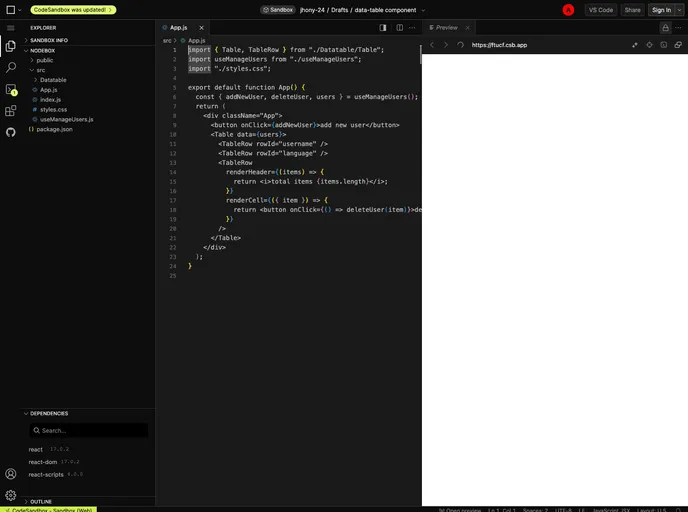 React Custom Datatable