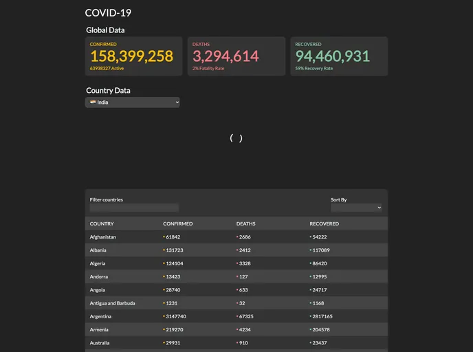 COVID-19 dashboard create using Next.js + SCSS modules and hosted on zeit's Now platform