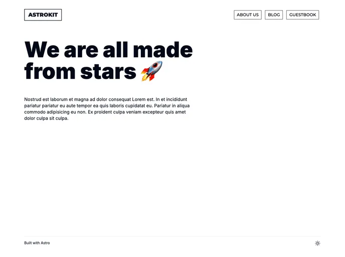 localhost:4321 to preview their website during the development process../dist/ directory.The Astro Starter Kit provides developers with a minimal and lightweight development environment for building static websites using Astro and various component frameworks. It offers an organized project structure and a set of commands for installing dependencies, starting a local development server, building a production site, previewing the build locally, and running Astro CLI commands. With its simplicity and flexibility, the Astro Starter Kit is a valuable tool for web developers looking to create static websites efficiently.