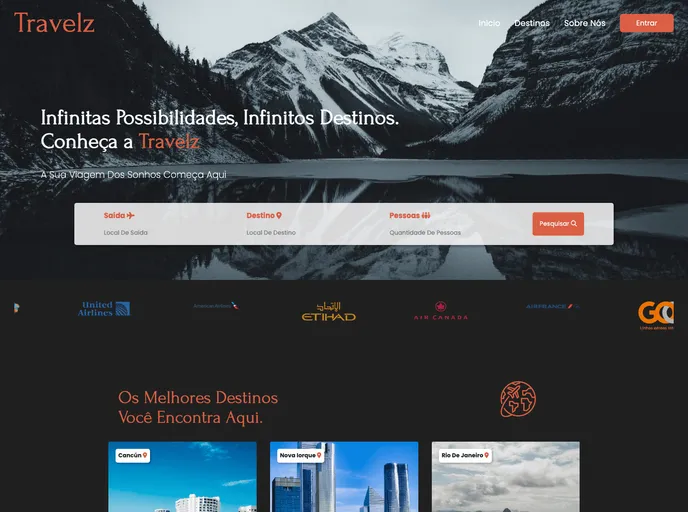 Landing Page responsiva feita para uma empresa/marca fictícia de viagens