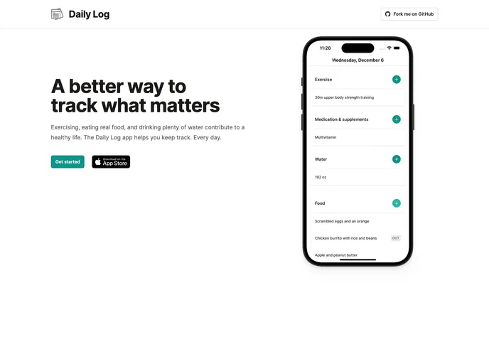 Daily Log is an innovative app designed to help users track their daily habits such as exercise, medication, food intake, and water consumption. Currently available on iOS, with an upcoming Android version, Daily Log seamlessly integrates web and mobile experiences thanks to its foundation in Ruby on Rails. The app's user-friendly interface is supported by Turbo Native technology, making habit tracking both efficient and enjoyable.