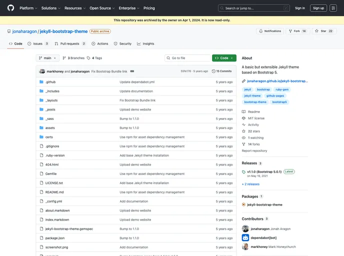Bootstrap 5 Jekyll template for GitHub Pages, based on jekyll-bootstrap-theme: