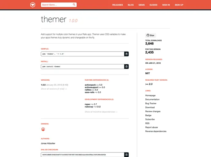 ThemerGem Version Add support for multiple color themes in your Rails app. Themer uses CSS variables to make your apps themes truly dynamic and changeable on the fly. Themer has been merged into Myg and Myg on Rails.