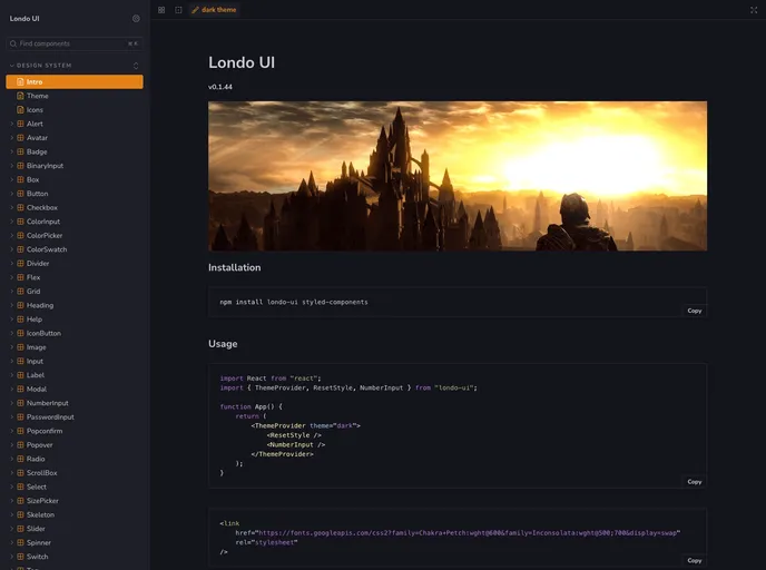Londo UI is a component library specifically designed for React web apps. It is currently a work in progress with an initial release coming soon. While its primary purpose is to support the Umbasa game engine and other personal web projects, the source code of Londo UI can also be useful for developers who are building their own React components.