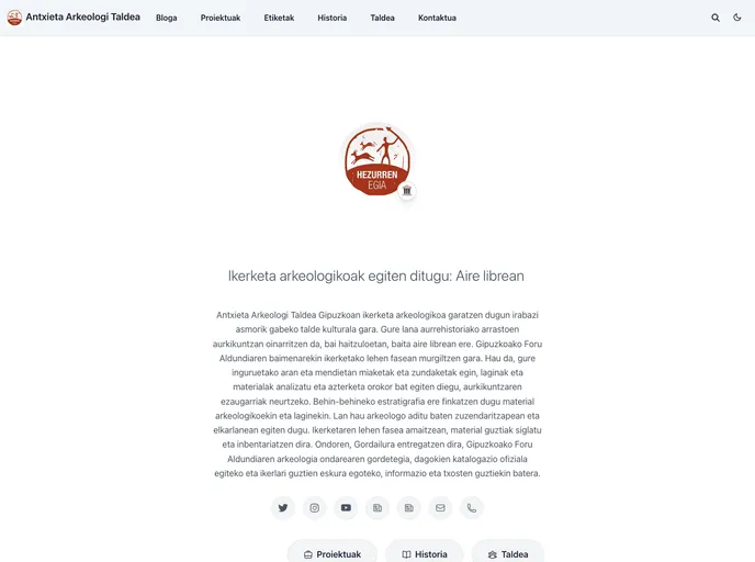 Antxieta Arkeologi Taldearen webgunea