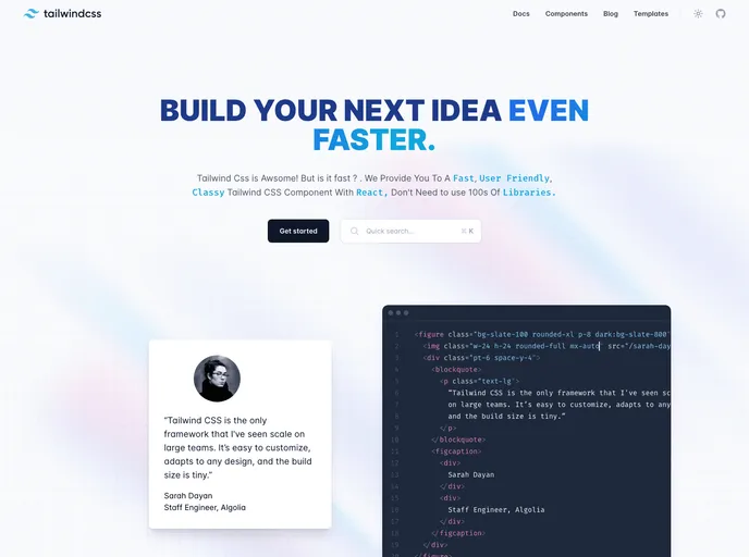 A React Components with Tailwind CSS. [ Esay Way To Start Your React App ]