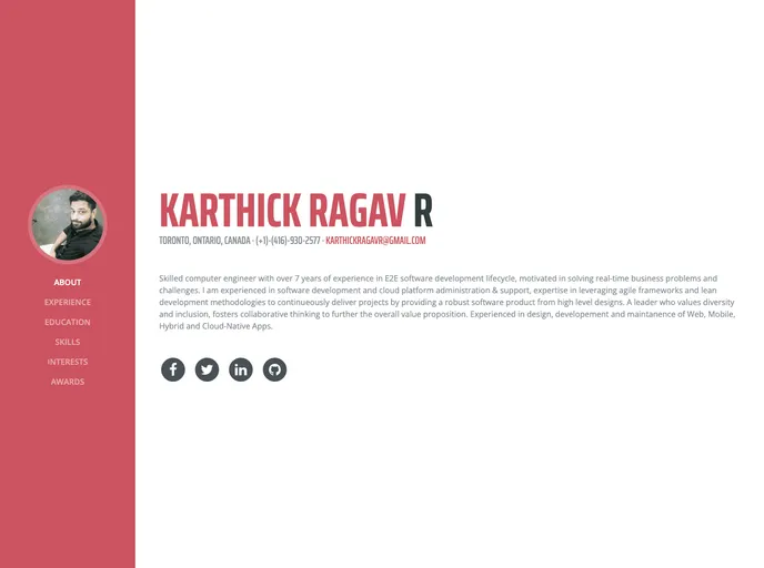 Resume is a resume and CV theme for Bootstrap created by Start Bootstrap. This theme features a fixed sidebar with content sections to build a simple, yet elegant resume.