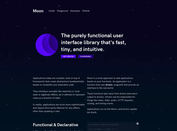 Moon is an impressive open-source project that has gained attention for its efficient framework designed for rapid view rendering. With a minimal file size of just 2kb when minified and gzipped, it stands out as a lightweight choice for developers looking for performance without compromising on functionality. Its design philosophy prioritizes a purely functional driver-based approach, which adds to its appeal for those who appreciate clean and maintainable code.