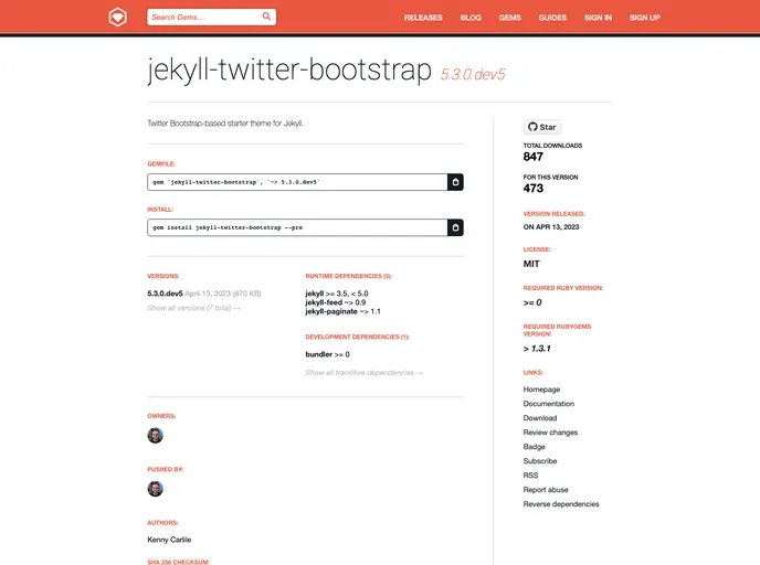 Jekyll Twitter Bootstrap is a Jekyll theme based on Twitter's Bootstrap framework (currently, version 5.3.0). The theme aims to provide a comprehensive starting point for using Jekyll and Bootstrap together.