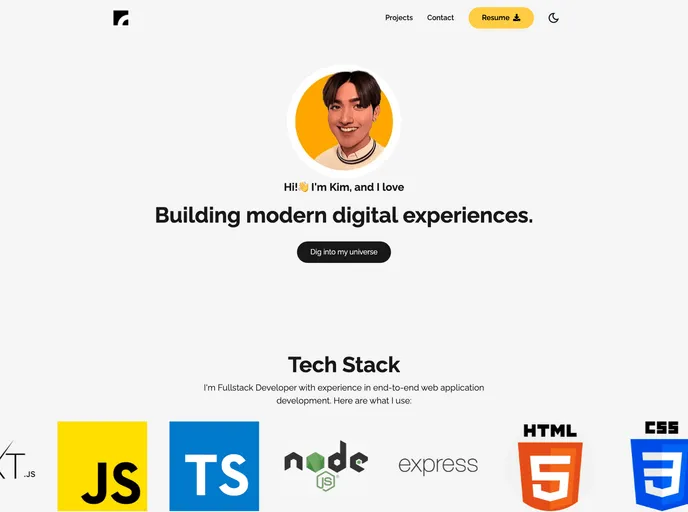Replace the default icon or user profile with your own profile image. The image can be found in the Hero.jsx component. You can either add the image locally by replacing it with /public/profile-image.png or replace the src link in the Hero.jsx with your preferred image. It is recommended to use your GitHub profile image link, so the image will update automatically when you update it on GitHub.