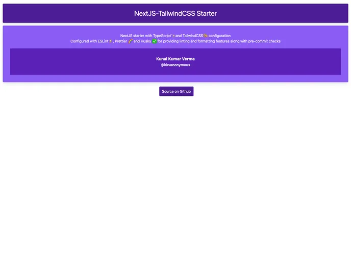 NextJS Starter implemented configured with TailwindCSS, ESLint, Prettier and Husky