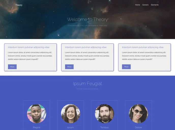 Responsive-Web-Layout-Template (Name: Theory) using HTML5, CSS3 and JavaScript.