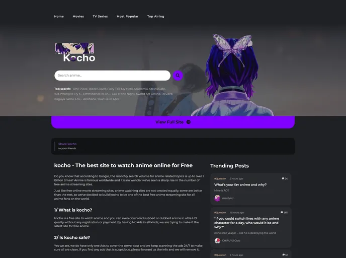 Zoro.to landing page clone with kocho version.
