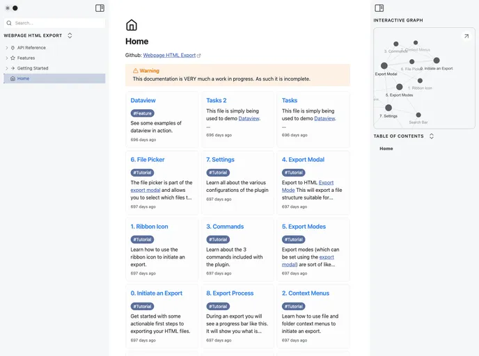 Export html from single files, canvas pages, or whole vaults. Direct access to the exported HTML files allows you to publish your digital garden anywhere. Focuses on flexibility, features, and style parity.