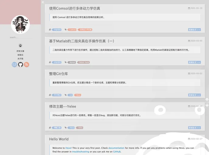 基于 Yelee 更新的 Hexo 双栏博客主题.