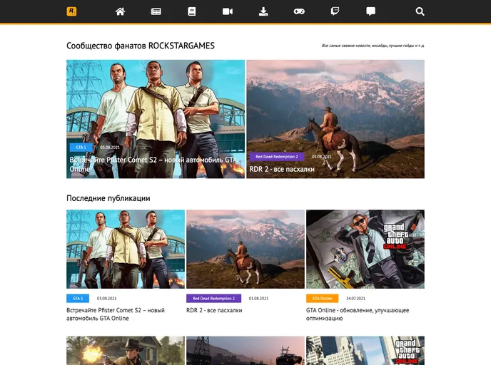Responsive template for RockstarGames fan site.
