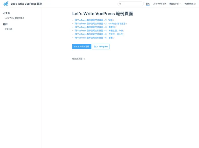 由 Let's Write 製作的 VuePress Demo 頁面