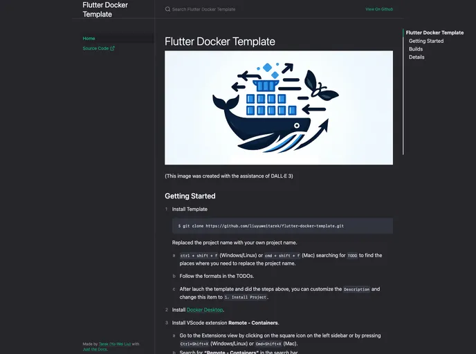 This is a Flutter project template which able to quickly create a Flutter Web App environment through docker and develop with VSCode.