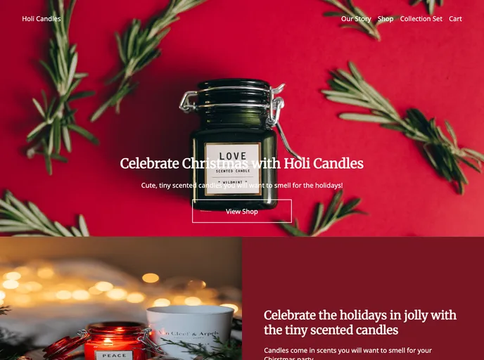 A fake landing page for a candle company who want to sell their products for the Holidays