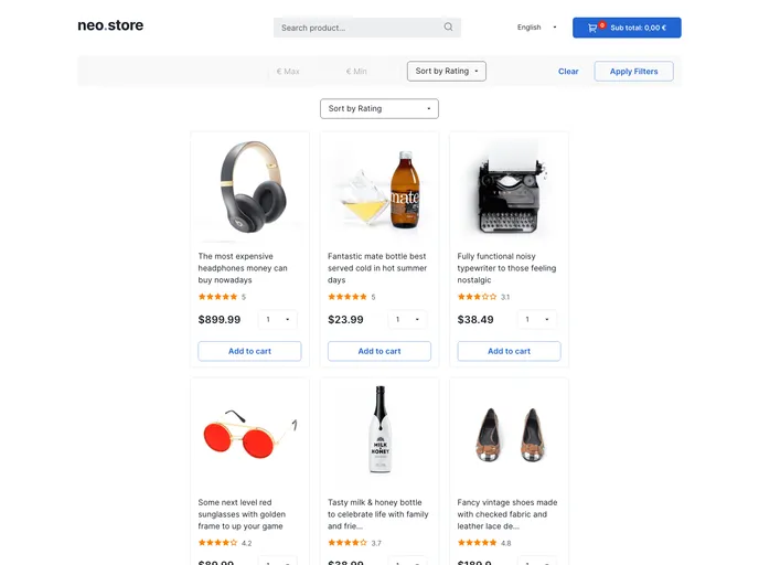 NeoStore, a concept ecommerce responsive website created with React, Next.js and DatoCMS.