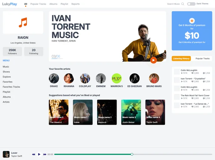 The responsive design of Lukyplay ensures that it performs beautifully on a variety of devices, making it ideal for enjoying your favorite tunes on-the-go. The careful attention to detail is evident in both the light and dark modes, giving users the freedom to choose their preferred aesthetic.