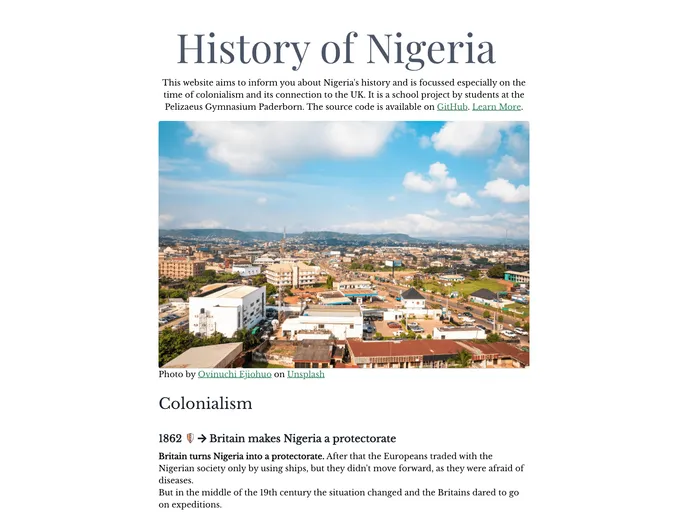 Website about Nigeria's history as a school project by Lennart Schröder and Lukas Langrock from Pelizaeus Gymnasium Paderborn.